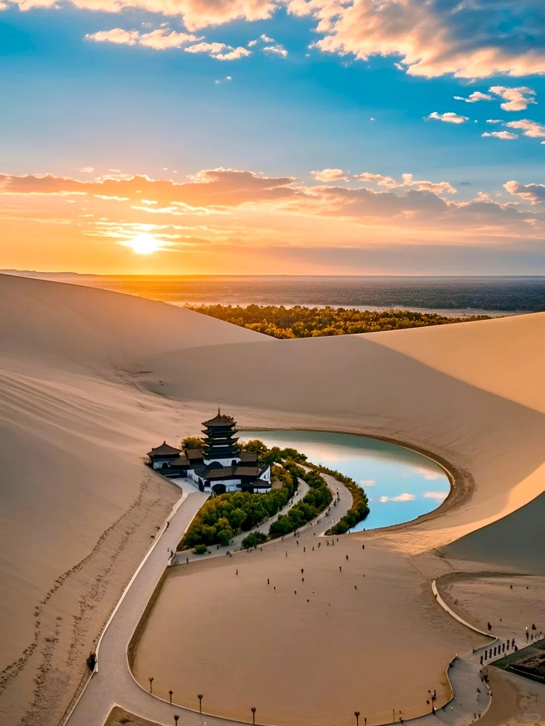 2.鸣沙山月牙泉属于沙漠景区,因此夏日白天温度很高建议下午16--17点去游玩体验感更佳!