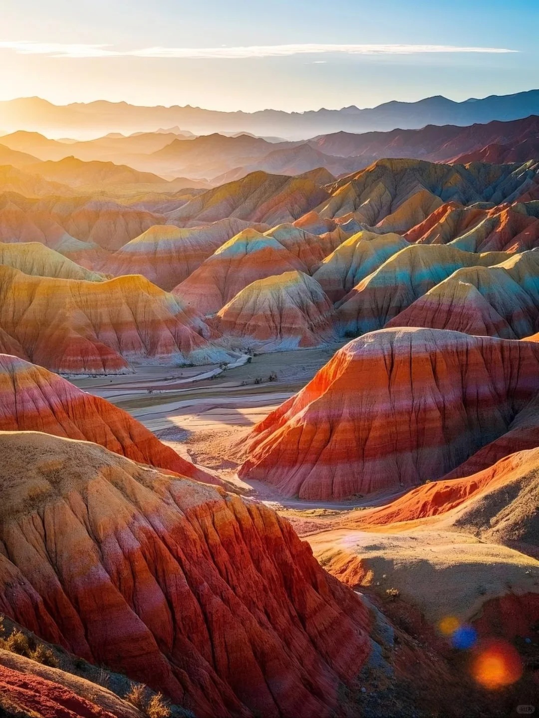 早餐后出发前往【张掖】。下午抵达七彩丹霞。如用文字来表达,仅有两个字震撼。其气势之磅礴、场面之壮观、造型之奇特、色彩之斑斓,大自然的鬼斧神工,令人惊叹。她不仅具有一般丹霞的奇、险,而且更美的在于色。