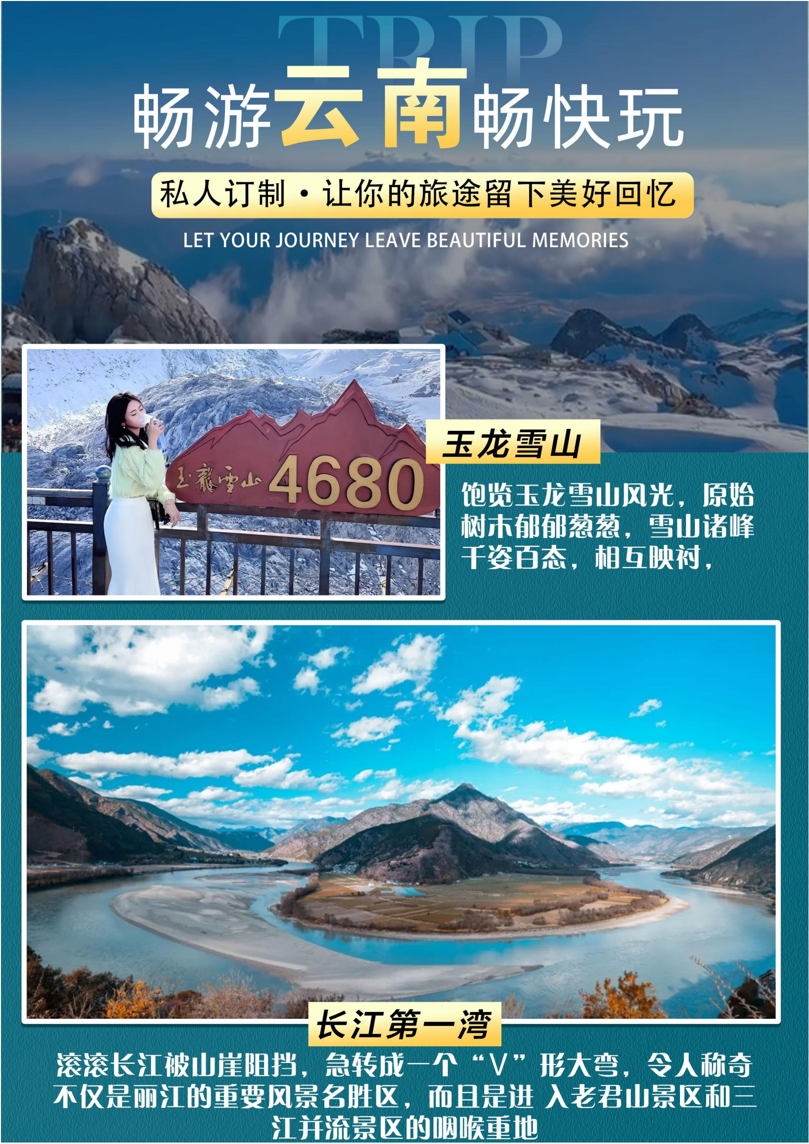 2、因雪山索道资源一人同期只能预约一条,如遇大索道和云杉坪索道均无法乘坐的情况(包括限流/天气原因临时停开/索道维修的情况),将现退大索道 120 元/人或云杉坪 40 元/人费用,另保证行程内蓝月谷景区的游览时间,额外增加玉龙雪山玉水寨景区游览打卡。)
