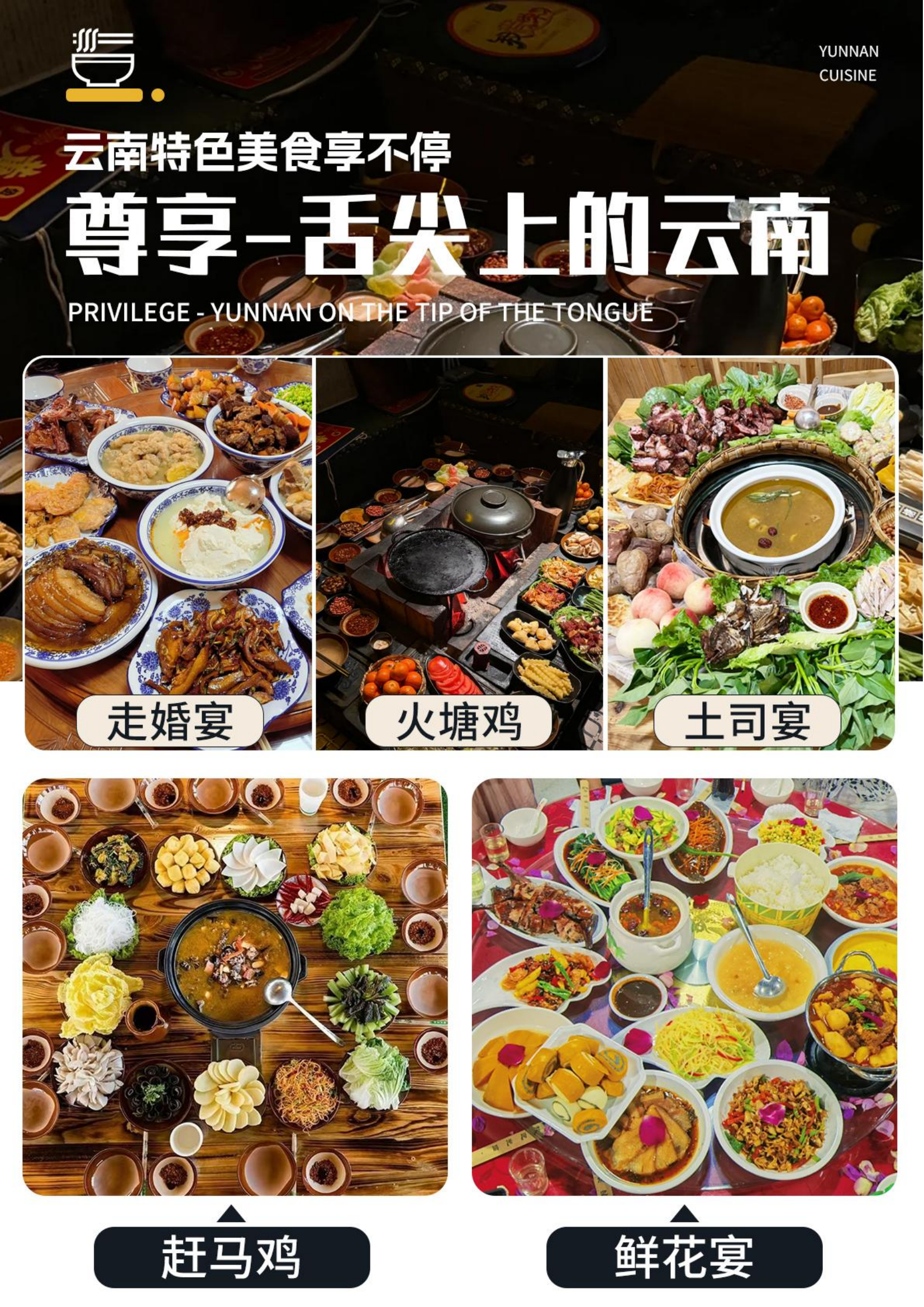 之后赴楚雄,入乡随俗,走进彝人部落,精心策划体验当地风情的彝味盛典【长街宴】:品彝族特色美食味,炊锅浓烈,坨坨肉、荞麦粑粑爽口至极,回味无穷,喝醇香彝族土家酒,一首首霸道的敬酒歌尽显彝族人的豪爽,一张张纯朴的笑脸传递彝家儿女火一样的热情。