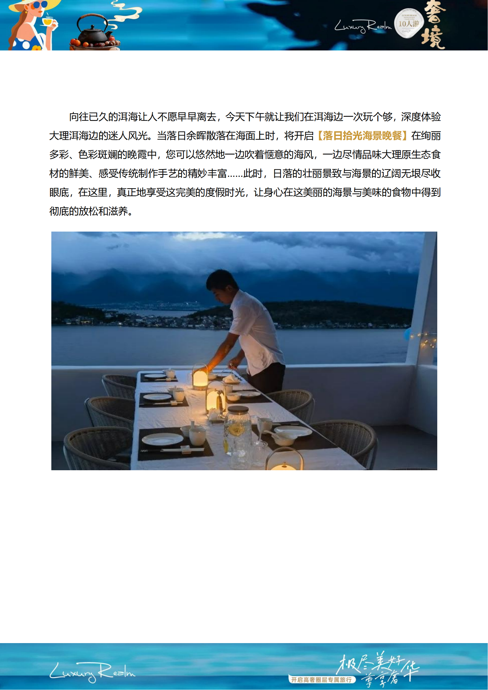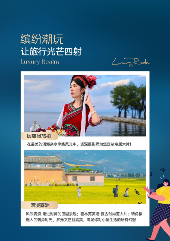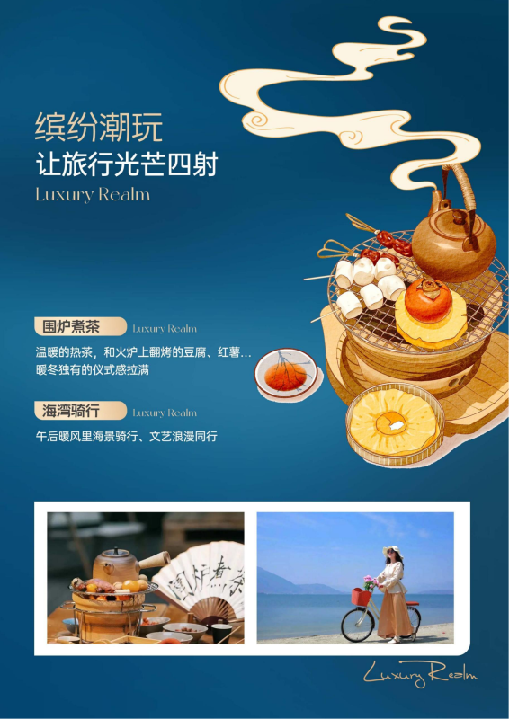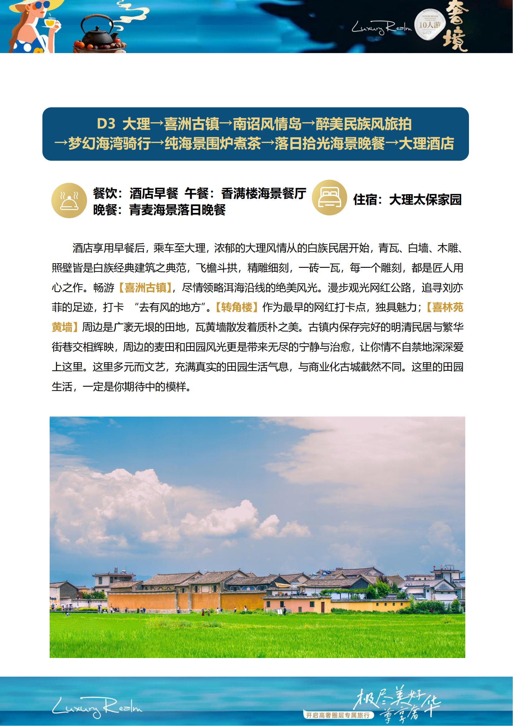 大理→喜洲古镇→南诏风情岛→醉美民族风旅拍 →梦幻海湾骑行→纯海景围炉煮茶→落日拾光海景晚餐→大理酒店