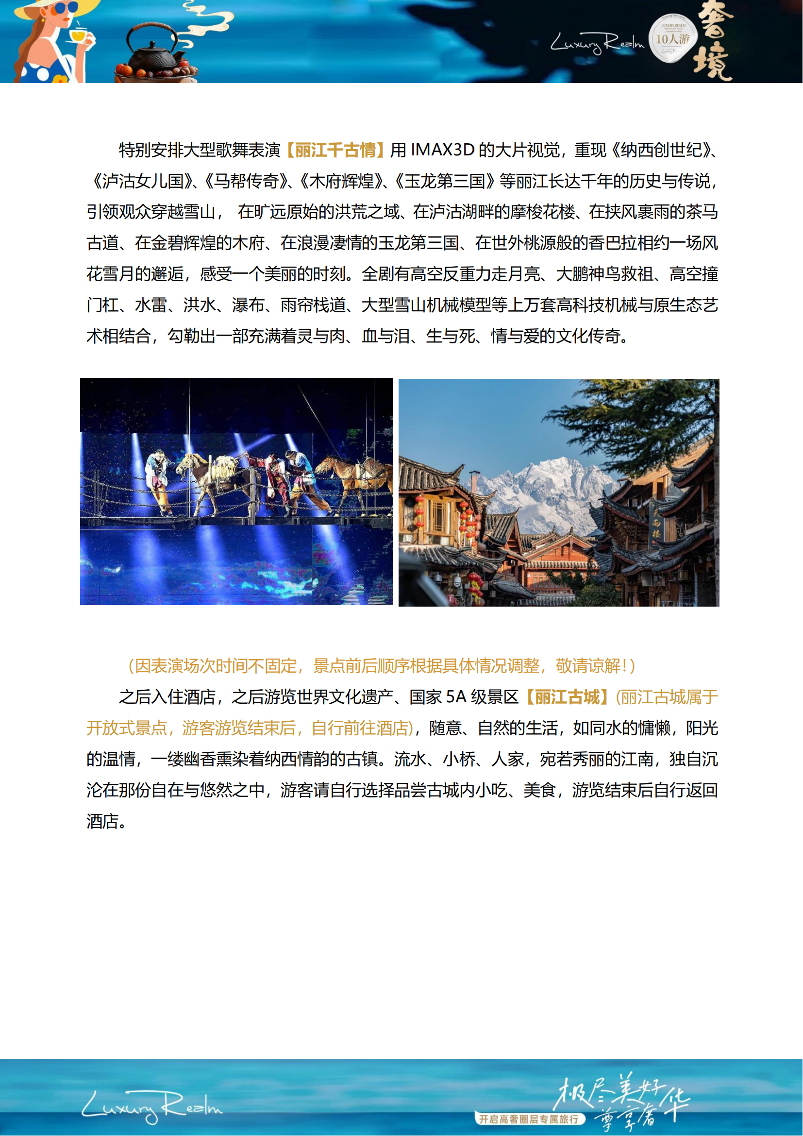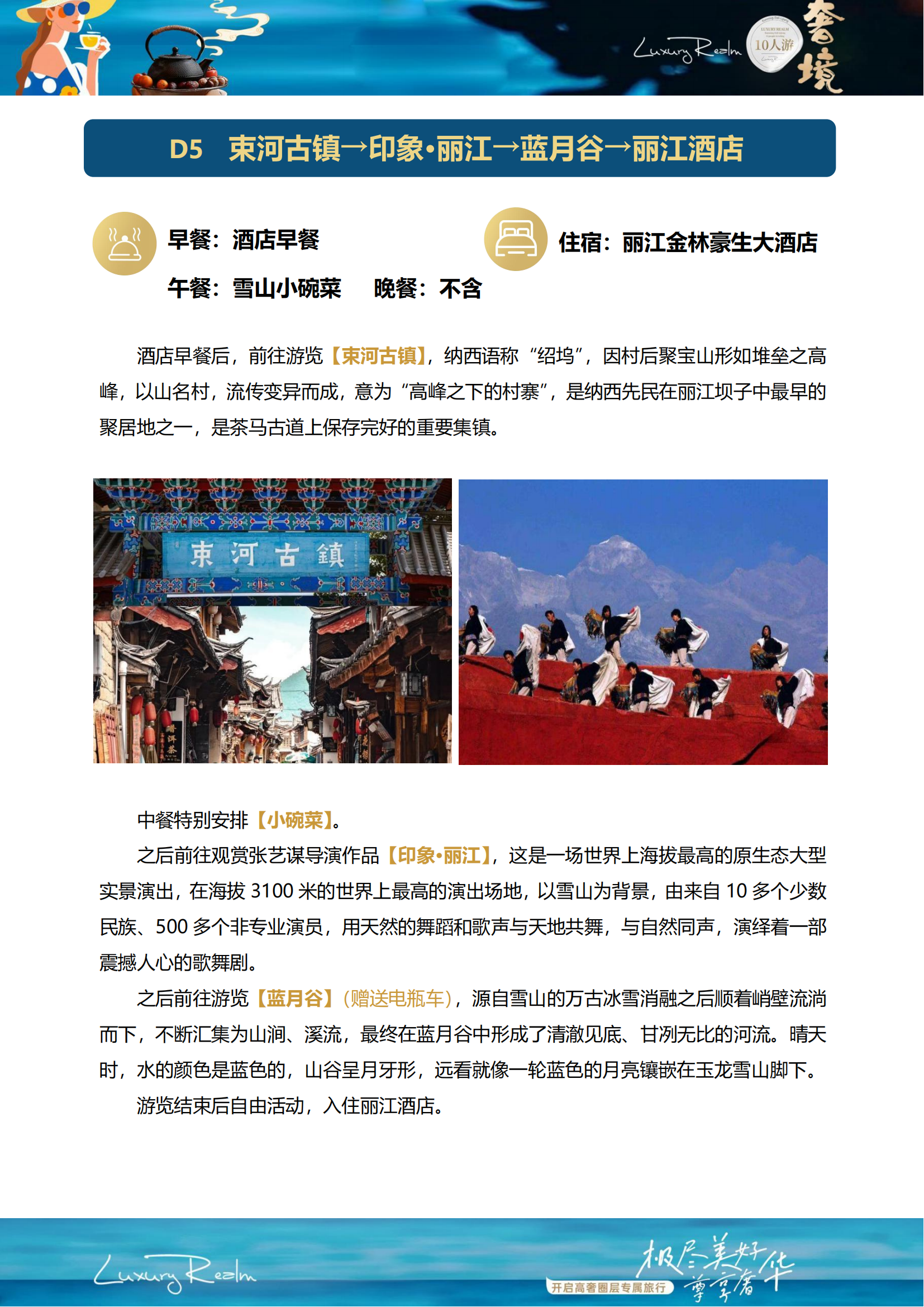 束河古镇→印象·丽江→蓝月谷→丽江酒店